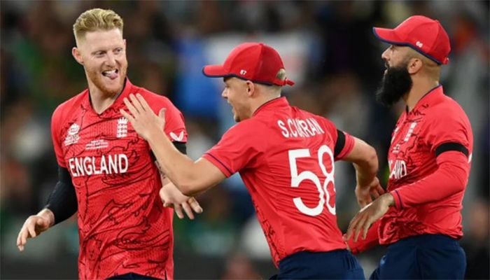 টি-টোয়েন্টি বিশ্বকাপের ফাইনালে পাকিস্তানকে ৫ উইকেটে হারিয়ে ১২ বছর পর চ্যাম্পিয়ন হলো ইংল্যান্ড। আজ রবিবার (১৩ নভেম্বর) মেলবোর্ন ক্রিকেট গ্রাউন্ডে পাকিস্তান আগে ব্যাট করে ৮ উইকেটে ১৩৭ রান তোলে। এর জবাবে বেন স্টোকসের অপরাজিত হাফ সেঞ্চুরিতে ভর করে ৫ উইকেট ও ৬ বল হাতে রেখে জয় তুলে নেয় ইংলিশরা। এই হিসেবে দুইবার টি-টোয়েন্টি বিশ্বকাপের শিরোপা ঘরে তোলে ইংলিশরা।পাকিস্তানের দেওয়া টার্গেটে ব্যাট করতে নেমে দলীয় ৭ রানেই উইকেট হারায় ইংল্যান্ড। সেমিফাইনালে ভারতীয় বোলারদের পাড়া মহল্লার বোলার বানিয়ে ফেলা ব্যাটার অ্যালেক্স হেলসকে দুর্দান্ত বোল্ড করেন শাহিন শাহ আফ্রিদি। দলীয় ৩২ রানে ফিল সল্টকে ইফতিখারের ক্যাচ বানিয়ে ইংলিশ শিবিরে দ্বিতীয় ধাক্কা দেন হারিস রউফ। তৃতীয় উইকেটে অধিনায়ক বাটলার অলরাউন্ডার বেন স্টোকসকে নিয়ে ১৩ রানের জুটি গড়েন। দলীয় ৪৫ রানে বাটলারকে উইকেটের পেছনে রিজওয়ানের ক্যাচ বানিয়ে প্যাভিলিয়নের পথ দেখান হারিস রউফ।টস হেরে আগে ব্যাট করতে নেমে পাওয়ারপ্লের সুবিধা নিতে ব্যর্থ হয় পাকিস্তান। তাই রান বাড়াতে ইংলিশ বোলারদের ওপর আগ্রাসী হয়ে উঠেছিলেন দুই ওপেনার। চতুর্থ ওভারের প্রথম বলে ওকসকে ছক্কা মারেন রিজওয়ান। পরের ওভারে তাকে ফেরত পাঠান কুরান। কুরানের ওয়াইড লাইনের বল তার ব্যাটে লেগে স্টাম্পে আঘাত করে। ১৪ বলে ১ ছয়ে ১৫ রান করে আউট হন রিজওয়ান। তখন পাকিস্তানের দলীয় রান মাত্র ২৯।দলীয় ৪৫ রানে ১২ বল খেলে ৮ রান করে বিদায় নেন মোহাম্মদ হারিস। আদিল রশিদের বলে স্টোকসের হাতে ক্যাচ দিয়ে ফেরেন তিনি। তৃতীয় উইকেটে বাবর ও শান মাসুদ ইনিংস মেরামতের চেষ্টা চালান। কিন্তু দলীয় ৮৪ রানে বাবর আদিল রশিদের দ্বিতীয় শিকারে পরিণত হন। বাবরের বিদায়ের পর রানের খাতা খোলার আগেই ইফতিখারকে বিদায় করেন স্টোকস। ইফতিখার ৬ বল থেকে ০ রান করেন।পঞ্চম উইকেটে শান মাসুদ ও শাদাব খান স্কোরবোর্ড সচল রাখার চেষ্টা চালান। দলীয় ১২১ রানে ২৮ বলে ৩৮ রান করা শান মাসুদকে আউট করে ৩৬ রানের জুটি ভাঙেন কুরান। শানের বিদায়ের ২ রান পর শাদাবকে নিজের শিকার বানান ক্রিস জর্ডান। তখন দলীয় রান ১২৩। মোহাম্মদ নওয়াজও বেশিক্ষণ থাকতে পারেননি। ৭ বলে ৫ রান করে দলীয় ১২৯ করে কুরানের তৃতীয় শিকারে পরিণত হন নওয়াজ। বিশ্বকাপে ১৩ উইকেট নিয়ে দ্বিতীয় সর্বোচ্চ উইকেট শিকারিতে পরিণত হন কুরান। দলীয় ১৩১ রানে মোহাম্মদ ওয়াসিমকে বিদায় করে ম্যাচে দ্বিতীয় উইকেট শিকার করেন জর্ডান। শেষ পর্যন্ত পাকিস্তান ৮ উইকেট হারিয়ে মাত্র ১৩৭ রান সংগ্রহ করে। জিততে হলে ইংল্যান্ডকে করতে হবে ১৩৮ রান।ইংল্যান্ডের হয়ে স্যাম কুরান ৩টি, ক্রিস জর্ডান ও আদিল রশিদ ২টি এবং বেন স্টোকস একটি উইকেট লাভ করেন। 