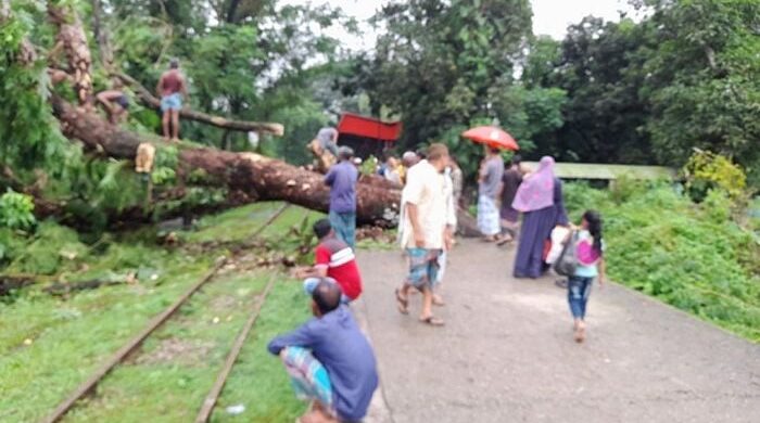 মাইজদী স্টেশনের প্ল্যাটফর্মের পাশে একটি গাছ রেল লাইনের ওপর উপড়ে পড়ায় নোয়াখালীর সঙ্গে সারা দেশের রেল যোগাযোগ বন্ধ রয়েছে। গতকাল সোমবার (৭ আগস্ট) রাতে এ ঘটনা ঘটে। আজ মঙ্গলবার (৮