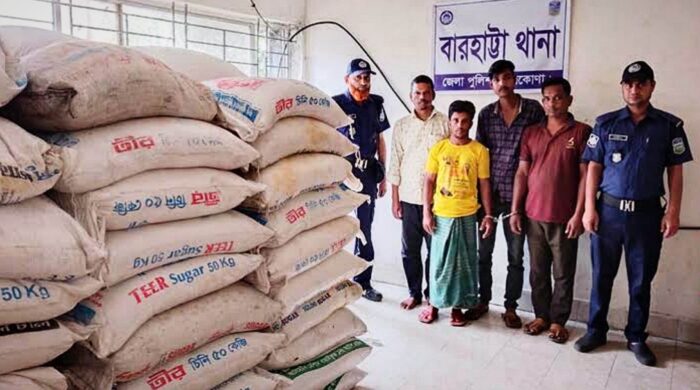 নেত্রকোণার বারহাট্টায় ১০ হাজার ১০০ কেজি চিনিসহ চারজনকে আটক করেছে পুলিশ। বৃহস্পতিবার (২৭ এপ্রিল) মাঝরাতে বিশেষ অভিযান চালিয়ে তাদের আটক করা হয়। এ সময় চোরাচালানের কাজে ব্যবহৃত দুটি পিকআপ ও